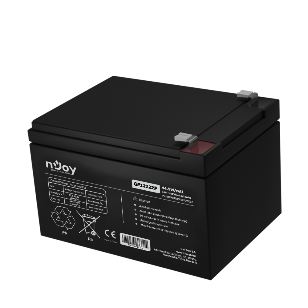 UPS- acumulatori Njoy GP12122F | Baterie UPS | 12 V | 12 A | Borne F2 | 44,5 W | 151 x 98 x 101 mm Cod Produs: BTVACATBDTE2FCW01B